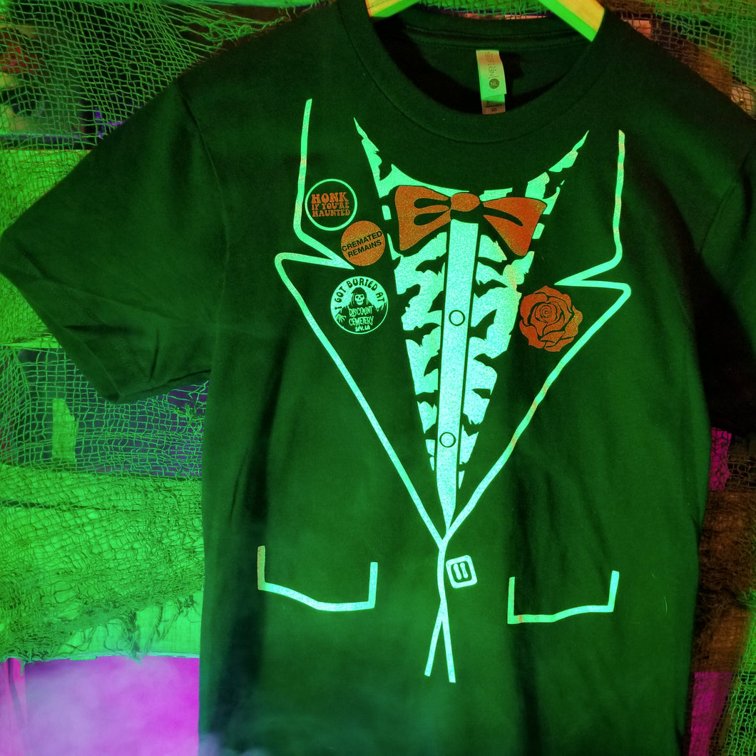 Make no mistake, our DEAD LUCK TUX it isn't just great for burials. It is also a great look for first dates, honeymoons, sunday brunches, family gatherings, church services, really any occasion when you want to make a statement that no ordinary shirt will do.
