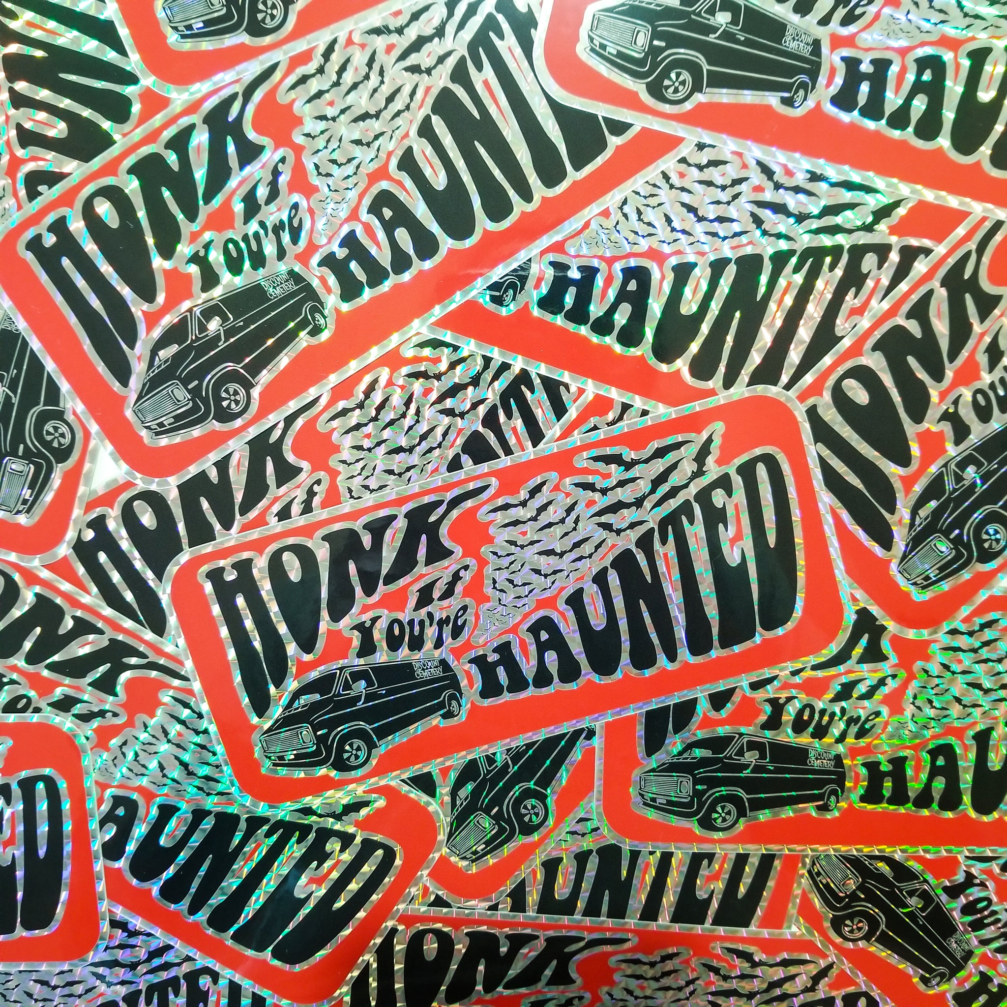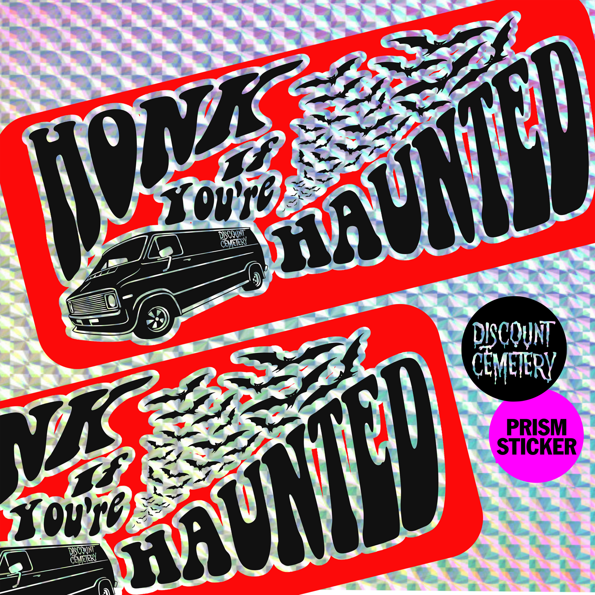 HONK IF YOU'RE HAUNTED prism sticker - Discount Cemetery