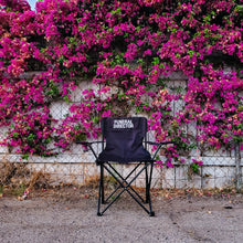 Each chair is screen printed on the back side and inside of the chair. Each chair also includes a carrying bag.  Mesh cup holder on the arm rest. Made of 600D Polyester and Steel. Dimensions: 32" w x 31.5" h x 18" d